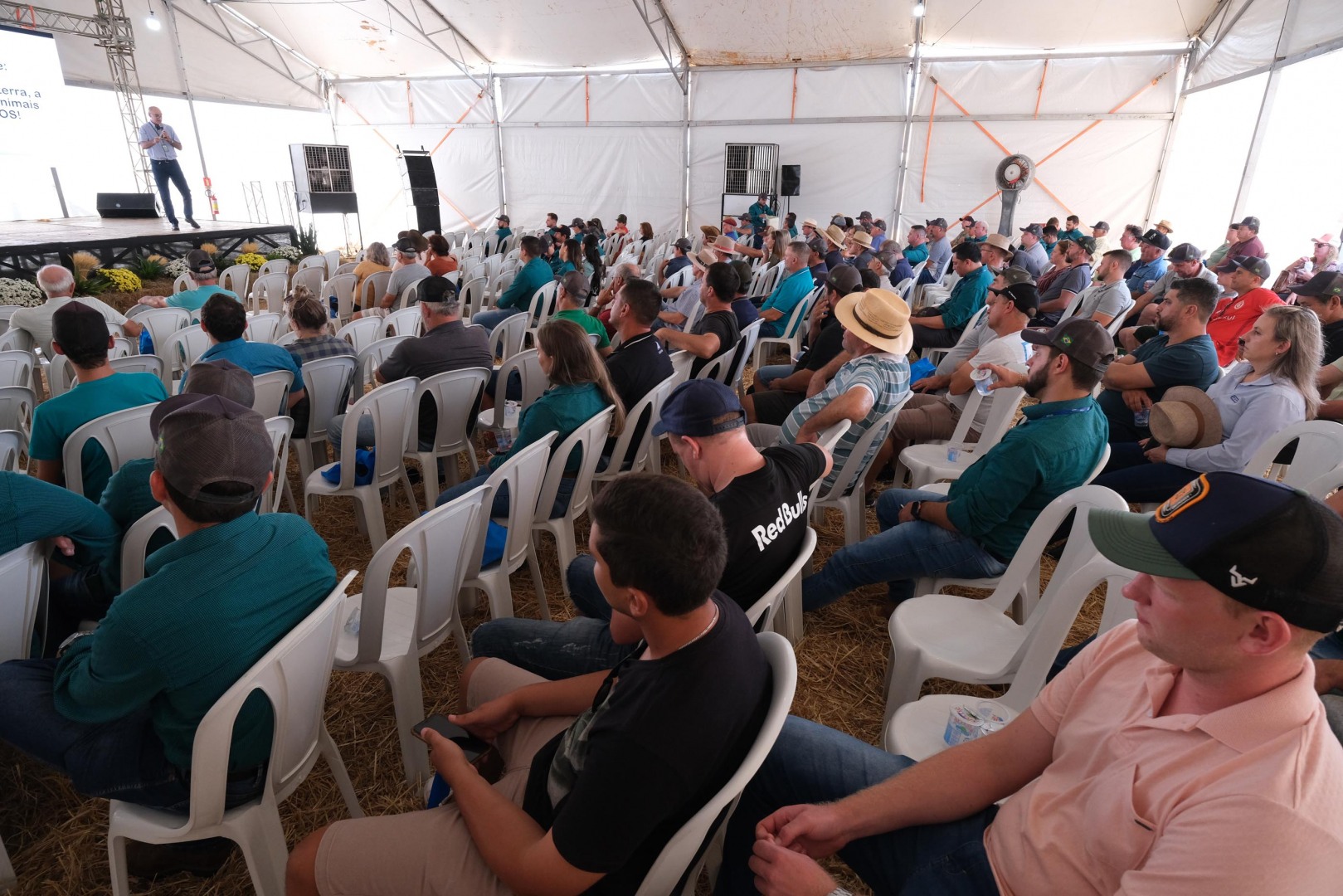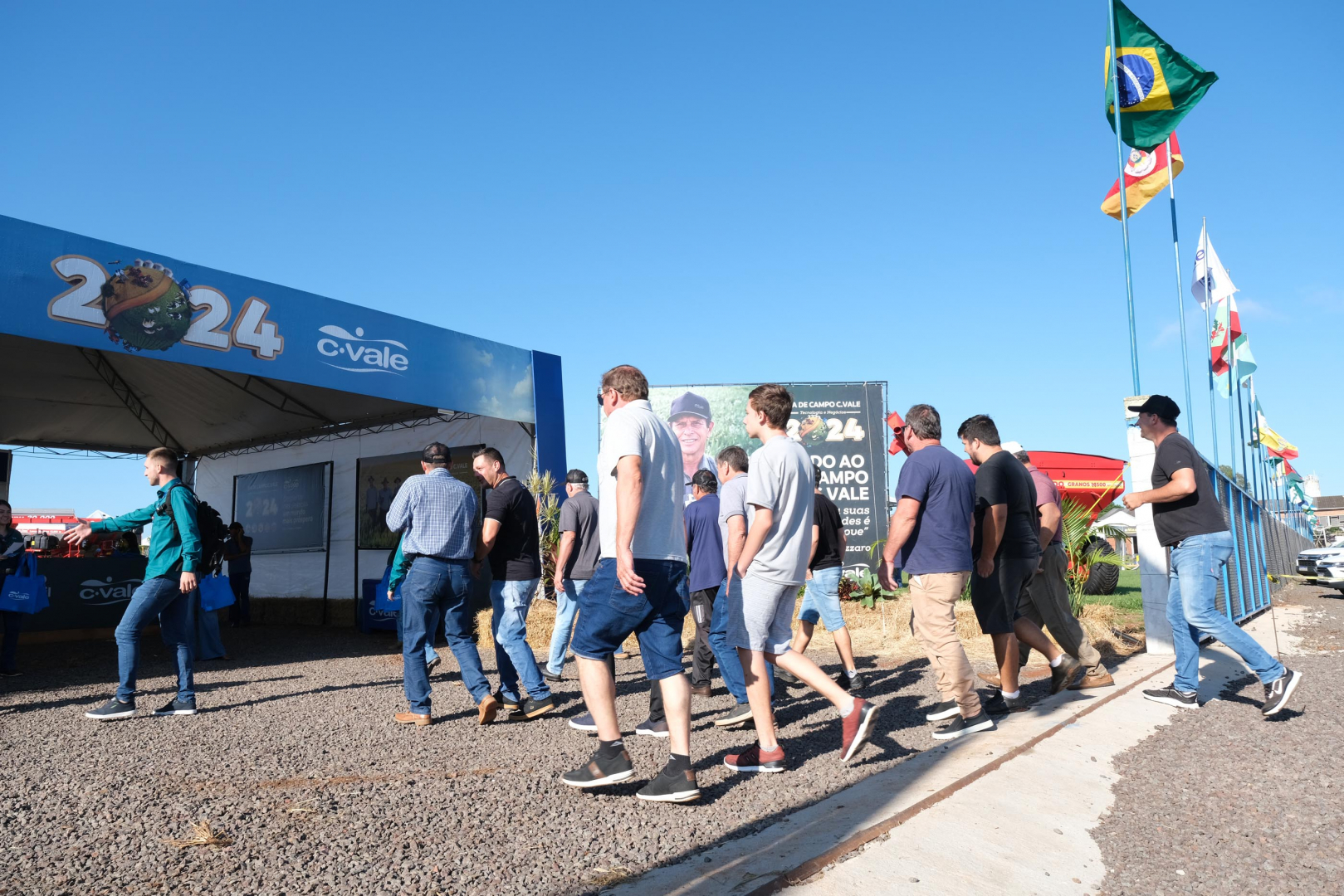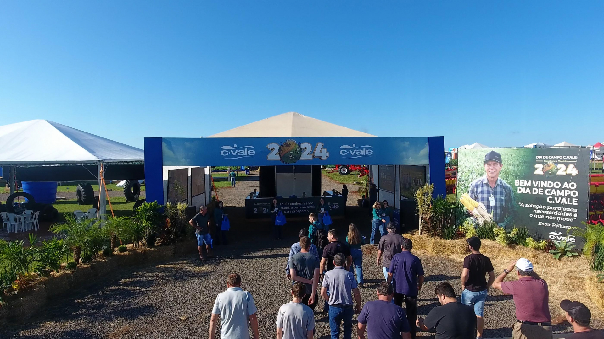 O Dia de Campo foi aberto, nesta quarta-feira, 21, pelo vice-presidente da C.Vale, Ademar Pedron. O evento prossegue, na quinta-feira, 22, com a participação de produtores de 28 unidades de grãos da C.Vale no RS. Vinte e oito empresas estão apresentando produtos e serviços para o agronegócio.