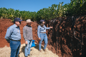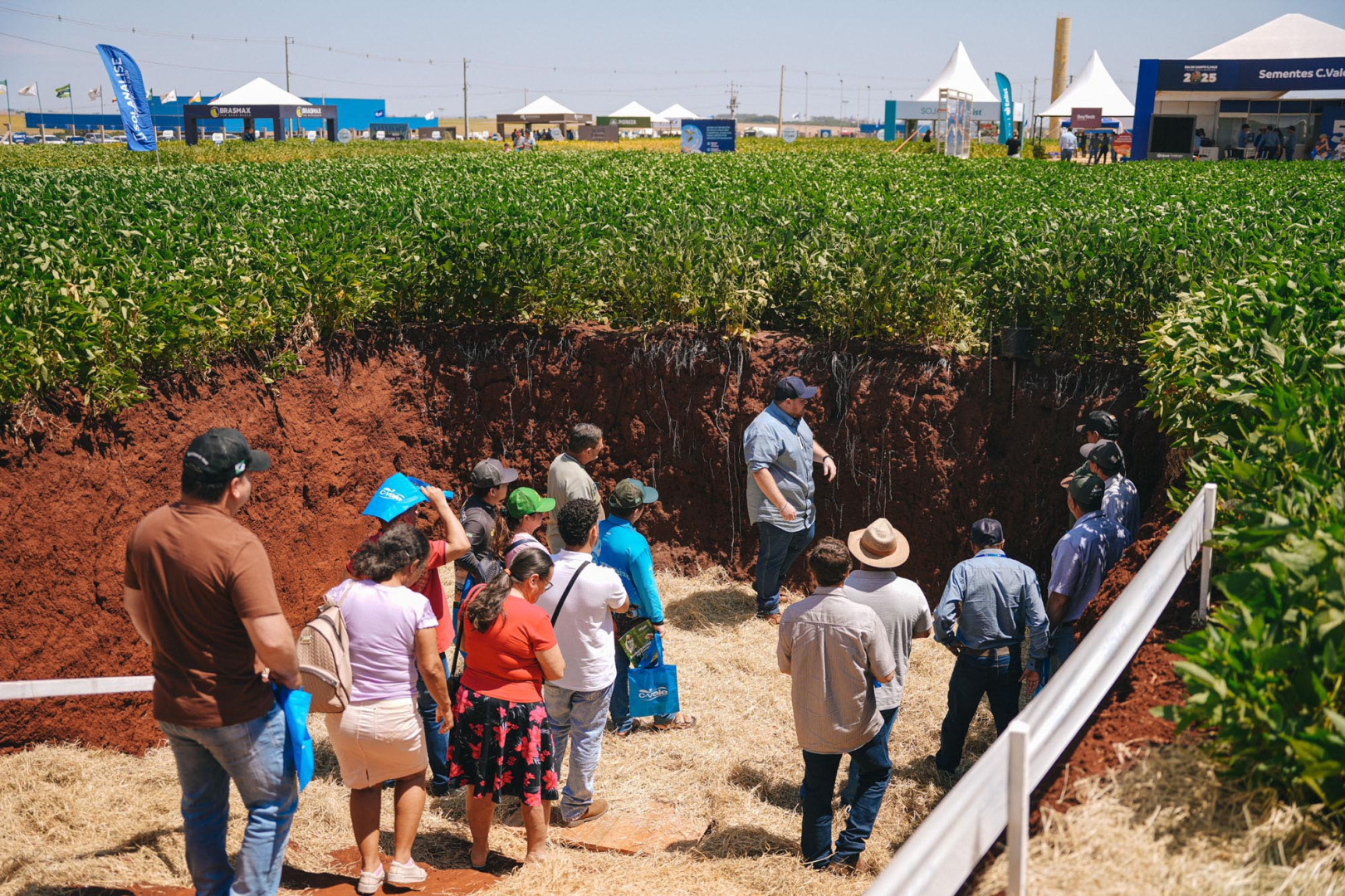 Ele disse, também, que começou a usar a agricultura de precisão e notou diferenças após a correção da fertilidade dos solos com o uso dessa tecnologia. “A soja e o milho crescem de maneira uniforme, não tem mais altos e baixos”, explica. Do mesmo município, Geraldo de Souza, ficou impressionado com o enraizamento da soja em uma trincheira aberta para essa finalidade. “Na seca, a soja ‘tá’ buscando umidade a mais de um metro de profundidade. Quero fazer a mesma coisa no meu sítio”, observou. Visitante de anos anteriores, ele revelou já ter adotado tecnologias conhecidas no Dia de Campo Verão. “Já usei na pastagem para o gado de leite”, assegurou.