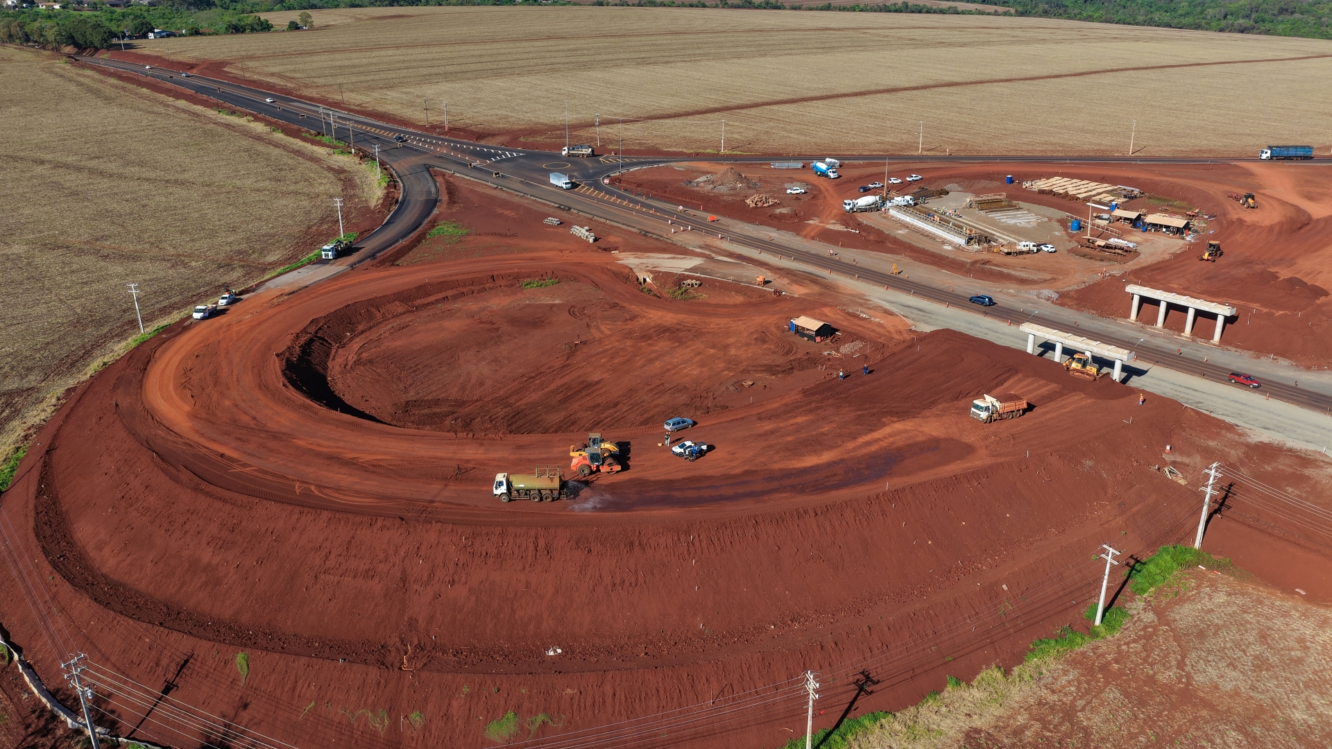 Nos três trechos, o asfaltamento está bem próximo da conclusão, restando apenas 6% do total a realizar. Nos seis meses restantes do prazo previsto em contrato, os trabalhos mais complexos vão se concentrar no viaduto que está sendo erguido sobre o trevo de acesso ao complexo agroindustrial da C.Vale, na PR 182, que liga Palotina a Toledo. Para viabilizar a conclusão dos acessos ao viaduto, a rede elétrica de alta tensão será remanejada. Esse serviço começou em 28 de setembro e deverá ser executado ao longo do mês de outubro.
