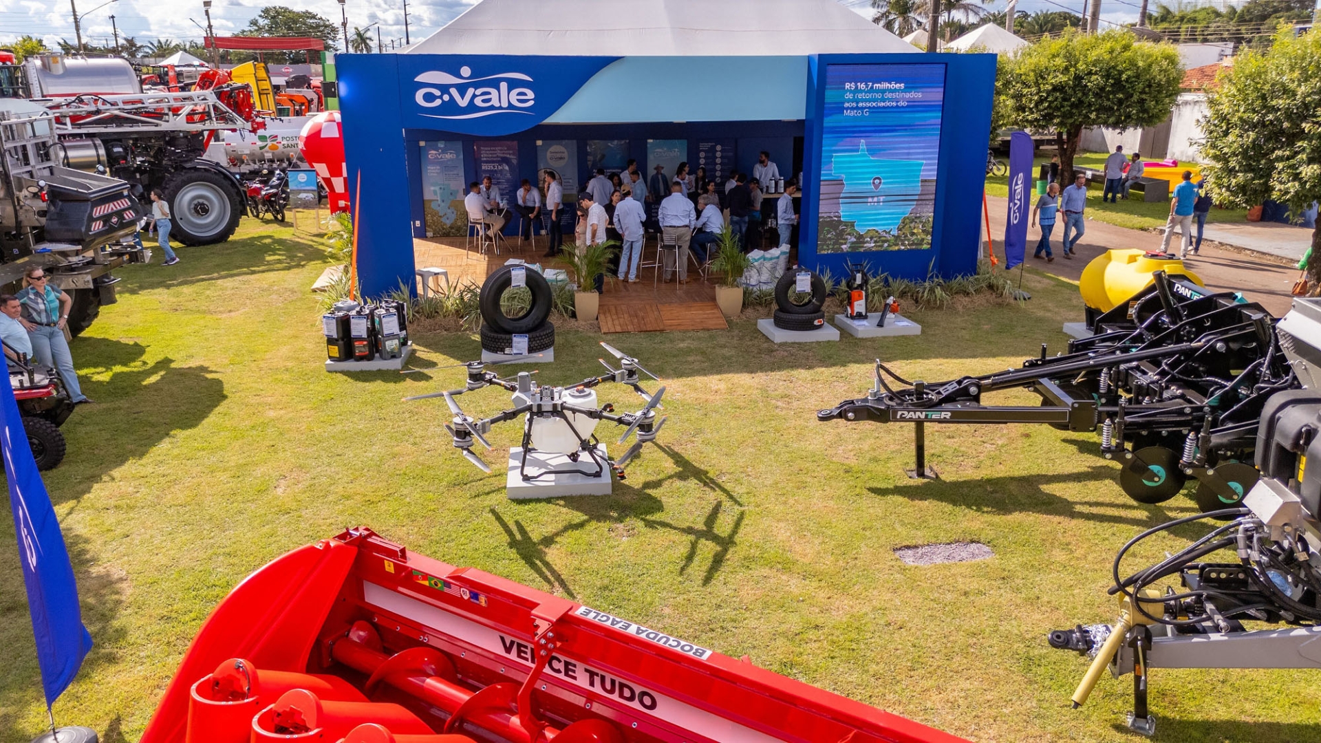 A C.Vale está oferecendo condições diferenciadas para negócios envolvendo insumos, máquinas, implementos, peças, acessórios e produtos veterinários durante a Norte Show, em Sinop (MT), de 21 a 24 de abril. A cooperativa ocupa stand com salas climatizadas, espaço para receber associados e visitantes e degustação de produtos. Os visitantes podem provar produtos da linha de carnes de frango e tilápia, conservas e suco de uva comercializados pela cooperativa.